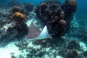 (_Myliobatidae_). Grupo de peces cartilaginosos conocidos comúnmente como rayas águila o mantas águila. Son miembros del orden _Myliobatiformes _y se caracterizan por tener cuerpos amplios y planos ...