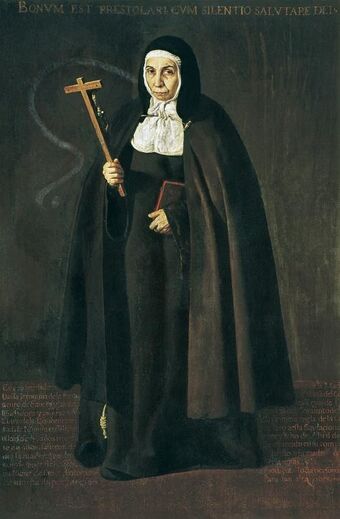 ... , orden religiosa u orden monástica femenina del catolicismo._La venerable madre Jerónima de la Fuente_ (1620, óleo sobre lienzo, 160 x 110 cm). Pintada por Diego Velázquez en Sevilla, entre el 1 y...