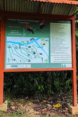 Parque nacional del Perú, creado el 29 de agosto de 1986, que protege un área de unos 1.220 km2 en la provincia de Oxapampa, departamento de Pasco. PARQUE NACIONAL YANACHAGA-CHEMILLÉNSeñalización y ...