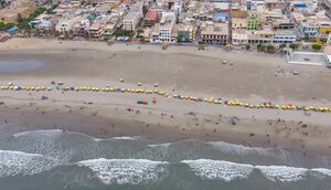 Ciudad del Perú, capital del distrito y de la provincia homónimos, en el departamento de La Libertad. PACASMAYO Vista aérea de Pacasmayo. Panorámica del malecón y las playas de la ciudad, con ...